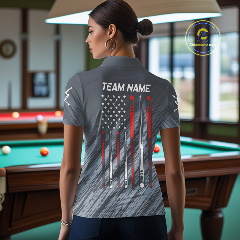 Personalized Billiard US Flag 9 Ball Pool Shirt For Women, Billiard Team Jersey Polo & 1/4 Zip TDM5218