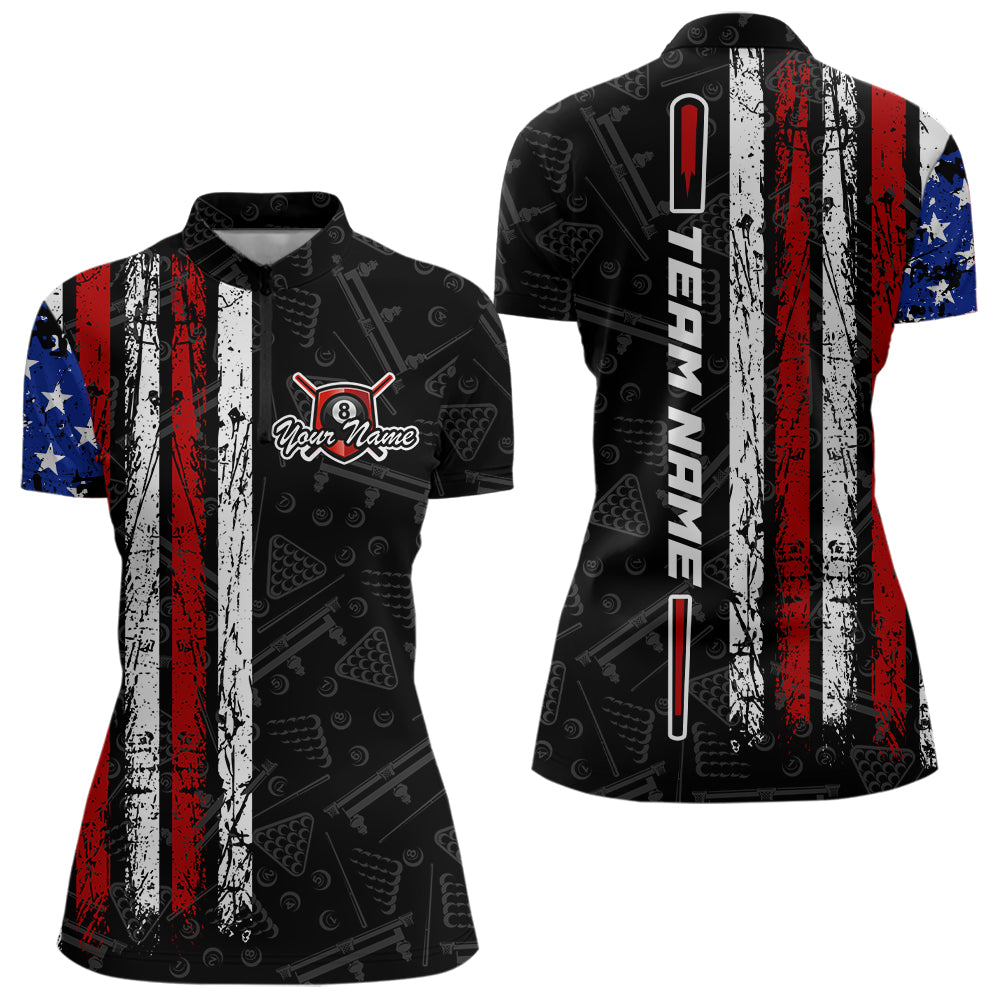 American Flag Billiard Jerseys 8 Ball Pool Billiard Shirts for Women Polo & 1/4 Zip Shirt NNT05
