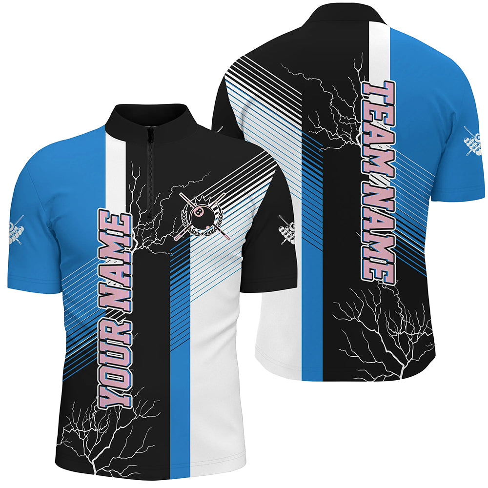 Personalized Black Blue Billiard Polo & Quarter Zip For Men Custom 8 Ball Pool Billiard Team Jersey TDM3270