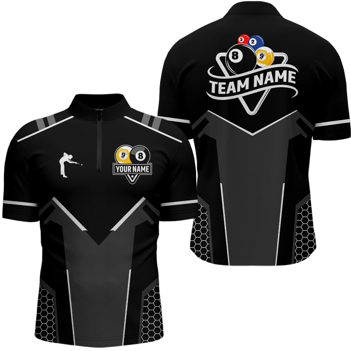 Personalized 8 Ball & 9 Ball Pool Billiard Polo, 1/4 Zip For Men Custom Team Billiard Jersey |White TDM3547