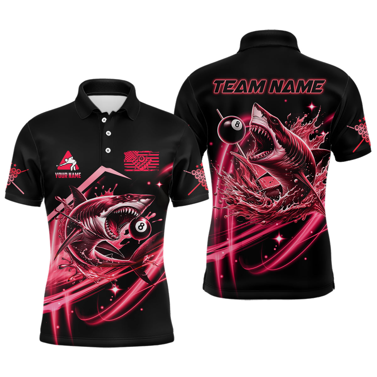 Red 8 Ball Pool Billiard Shark Polo & Quarter Zip For Men Custom Team League Billiard Jersey TDM3731