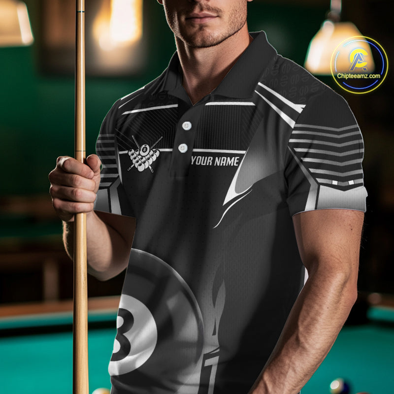 Black And Grey 8 Ball Pool Lights Billiard Polo & 1/4 Zip For Men Custom 3D Billiard Team Jerseys TDM4132