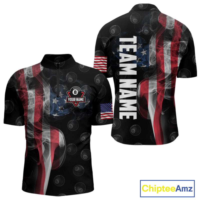 Personalized Vintage Smoke US Flag Billiard Shirts For Men, 8 Ball Pool Patriotic Billiard Jerseys TDM4731