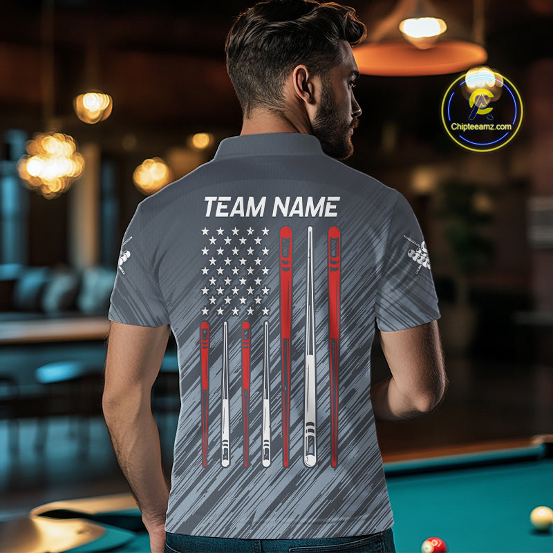 Personalized Billiard US Flag 8 Ball Pool Shirt For Men, Billiard Team Jersey Polo & 1/4 Zip TDM4989
