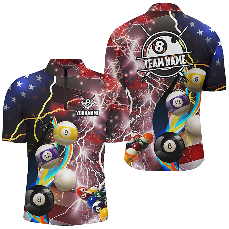 Personalized Billiard Balls American Flag Lightning Men Billiard Shirts, Patriotic Billiard Jerseys TDM2043