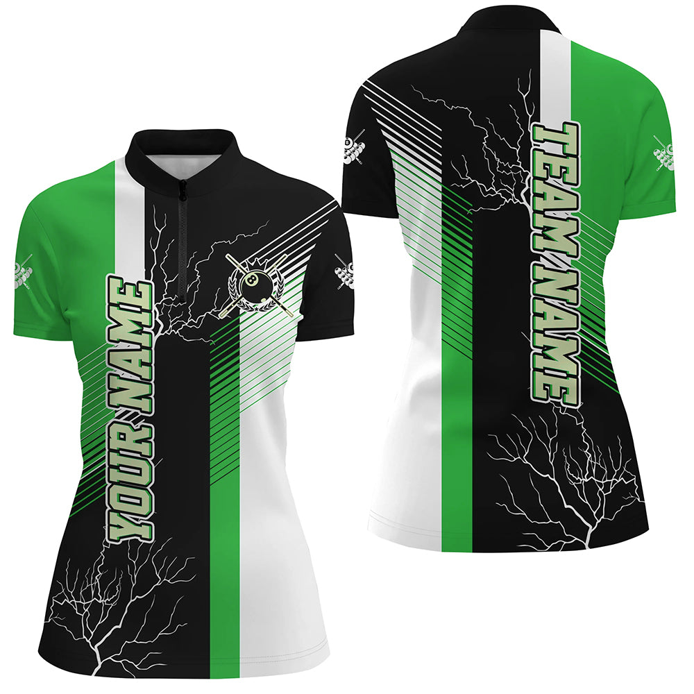 Personalized Black Green Billiard Polo, Quarter Zip For Women Custom 8 Ball Pool Billiard Team Jersey TDM3269