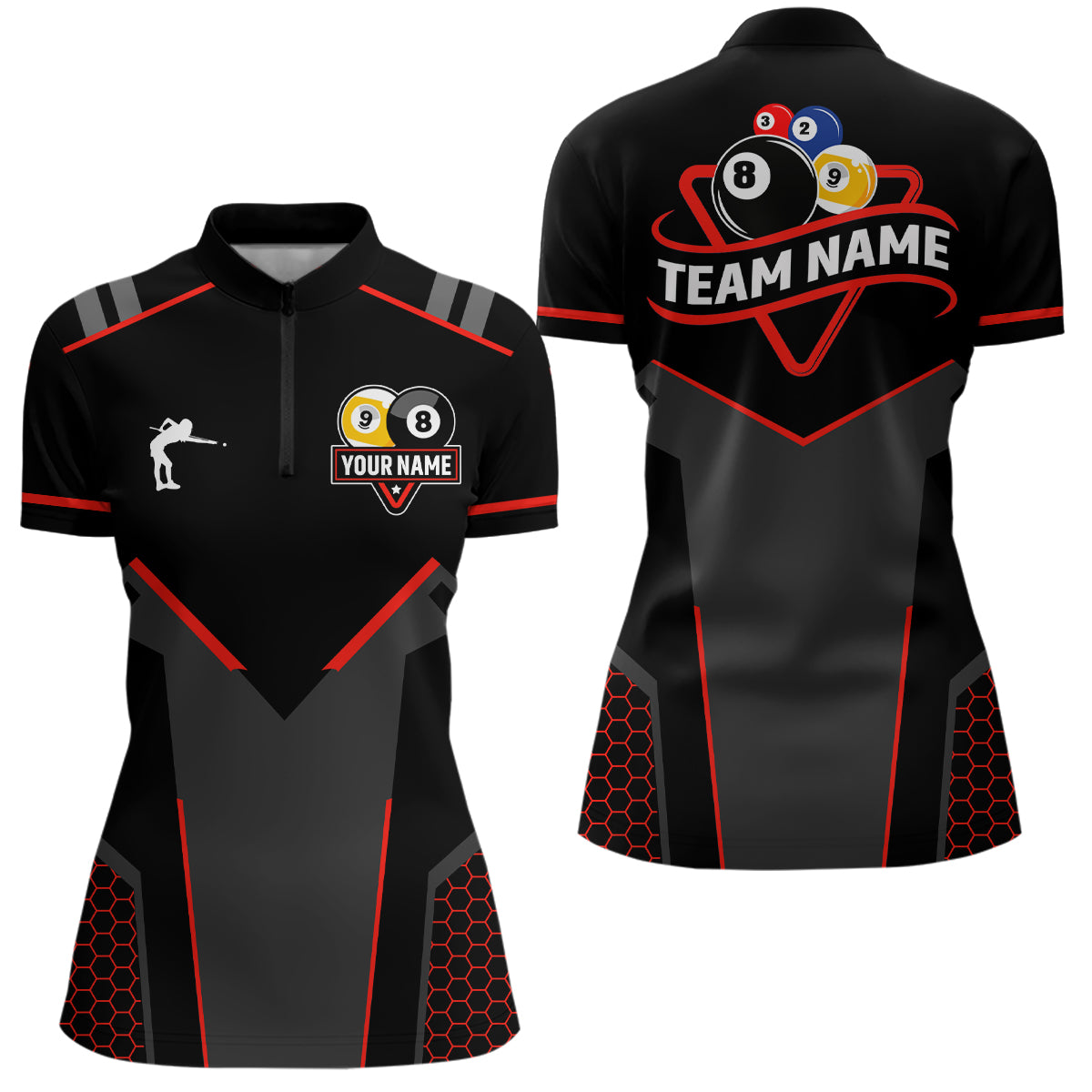 Personalized Billiard 8 Ball & 9 Ball Pool Polo, 1/4 Zip For Women Custom Team Billiard Jerseys |Red TDM3547