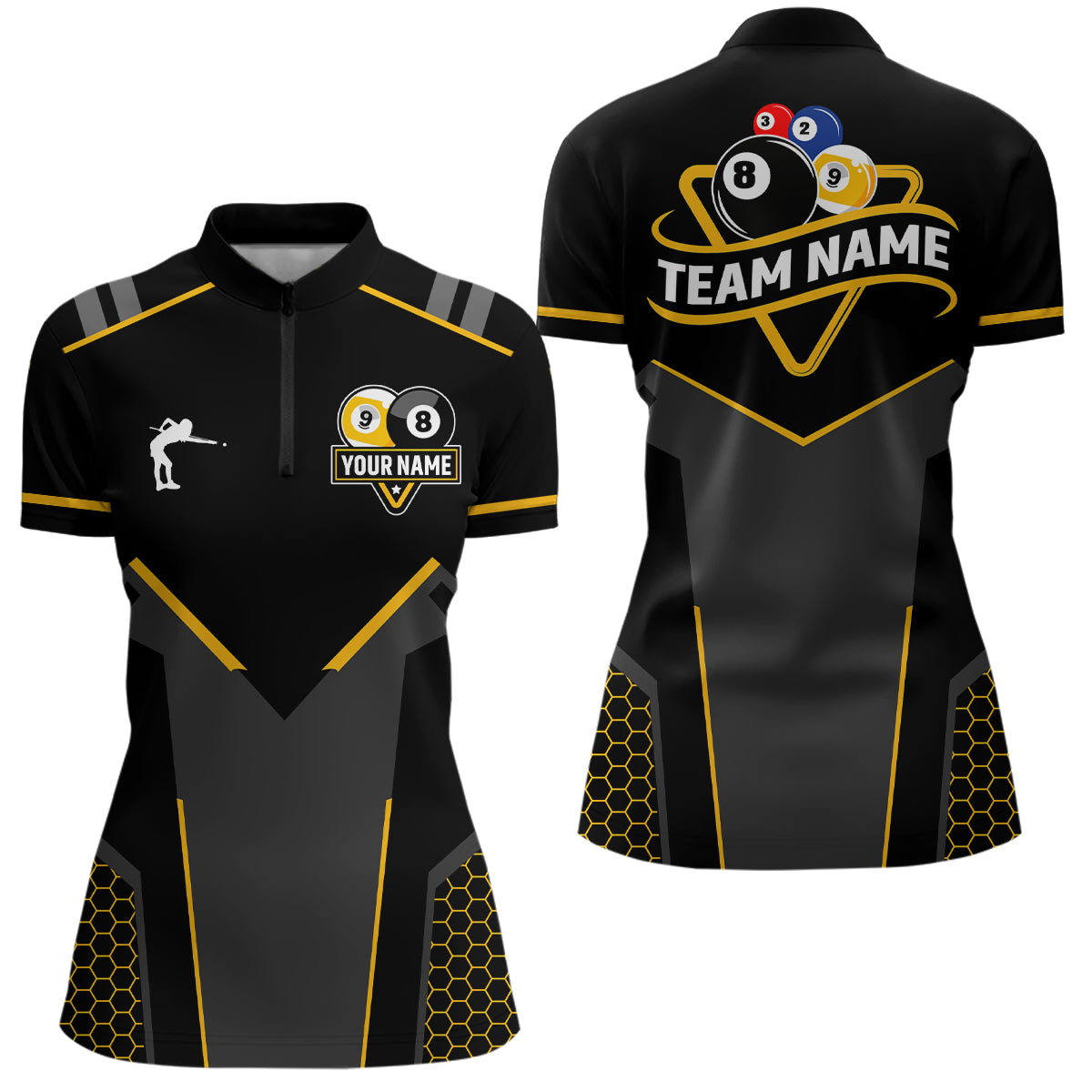 Personalized 8 Ball & 9 Ball Pool Billiard Polo, 1/4 Zip For Women Custom Team Billiard Jersey|Yellow TDM3547