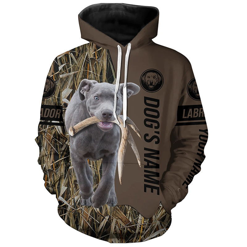 Silver Labrador Retriever Hunting dog customized Name Shirt, camo and brown color FSD4678