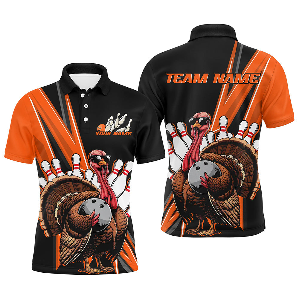Black And Orange Custom Awesome Turkey Bowling Shirts For Men, Thanksgiving Bowling Team Jerseys IPHW7879