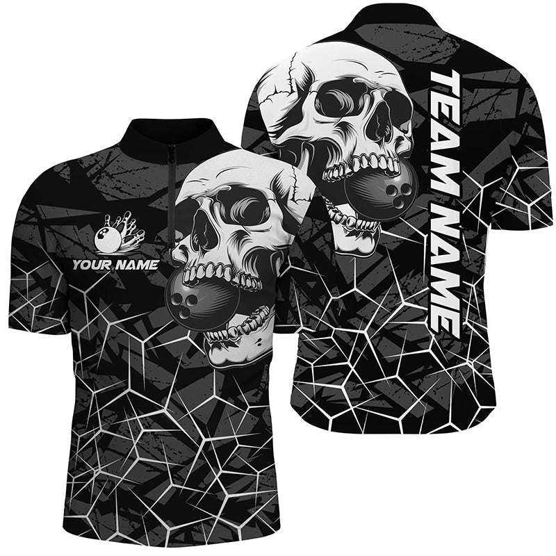 Black Skull camo bowling shirt for men custom bowling team jerseys, gifts for bowlers | White NQS8072
