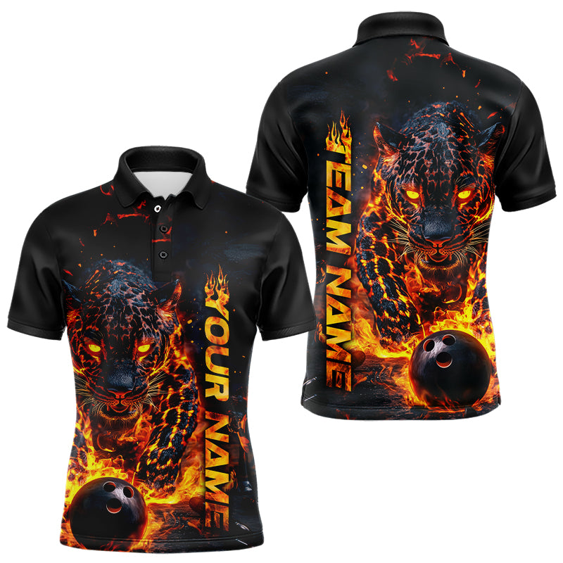 Custom Flaming Leopard Bowling Shirts For Men, Fire Bowling Team Shirt Bowler Uniform IPHW7999