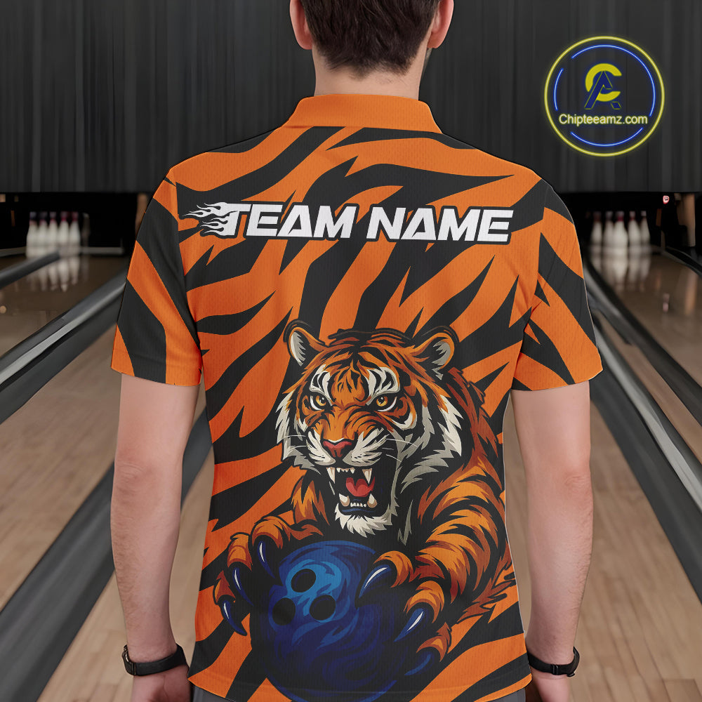 Custom Tiger Bowling Team Polo Shirts For Men, Tiger Bowling Team Uniform Bowler Outfit IPHW9025