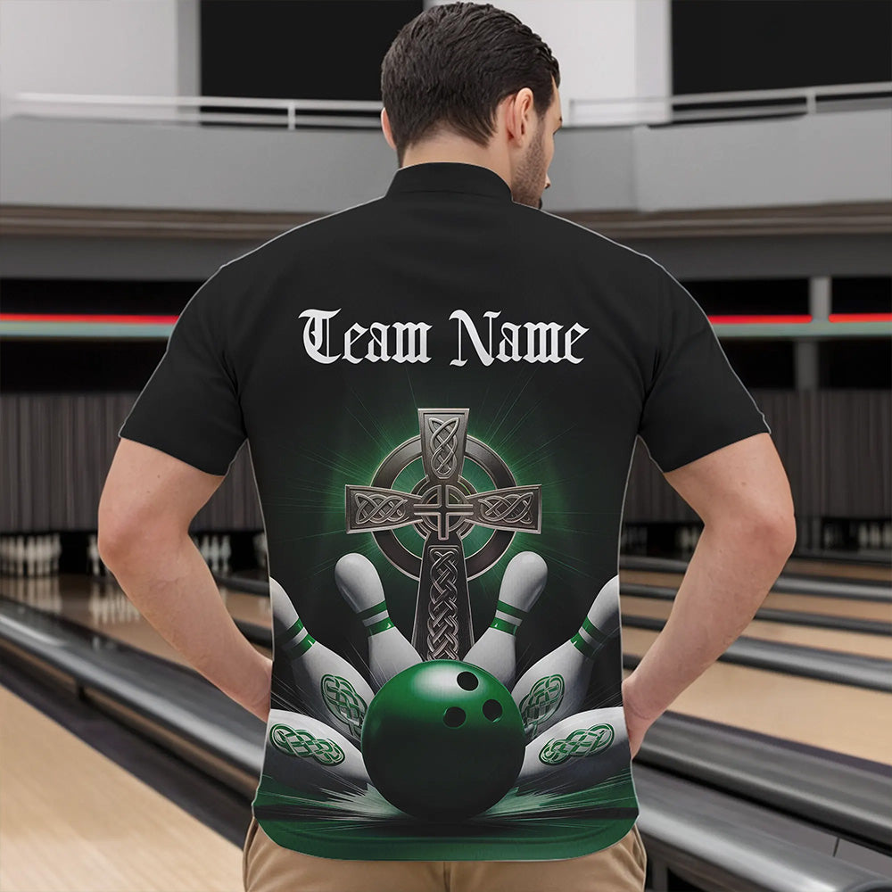 Custom Celtic Cross Faith Bowling Quarter-Zip Team Shirts For Men, Bowlers Outfits IPHW8574
