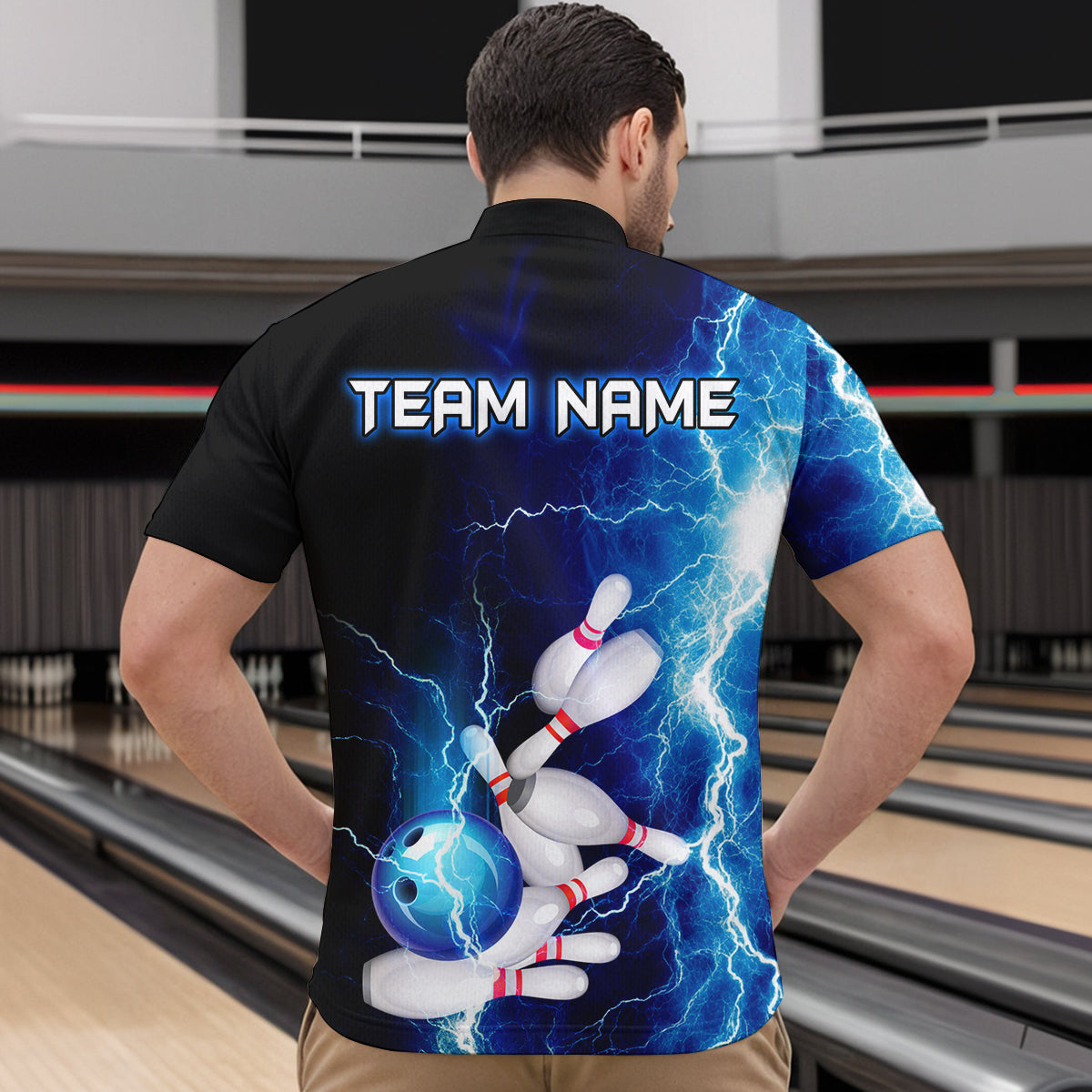 Blue Thunder Bowling Shirt for Men Custom Polo & Quarter-Zip Team Bowling Jersey Bowling Team Shirt HNT22