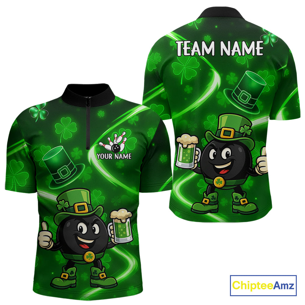 Green shamrock pattern Funny Bowling Shirts For Men Custom St Patrick's Day Lucky Team Bowling Jersey NQS11133