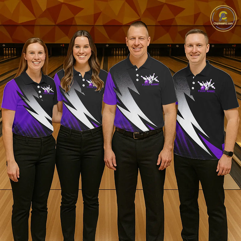 Black And Purple Custom Bowling Jerseys, Bowling Team Shirts For Men Bowling Tournament Outfits IPHW7707