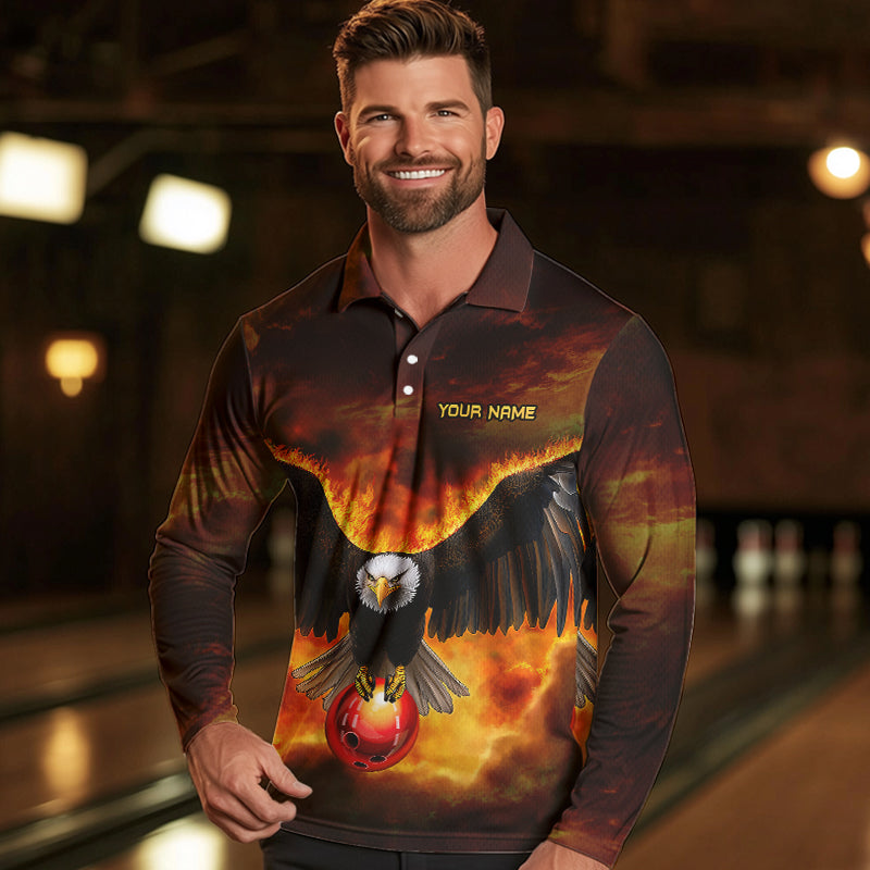 Personalized Flame Eagle Custom Bowling Team Shirts For Mens, Fire Eagle Bowling League Jersey NQS9512