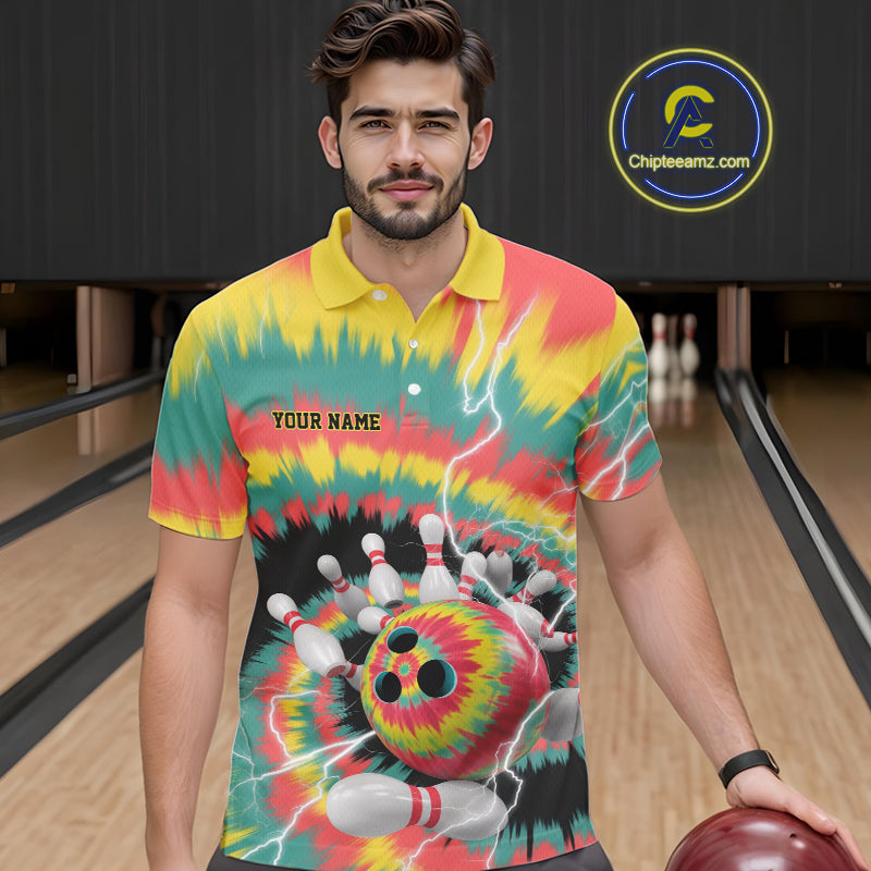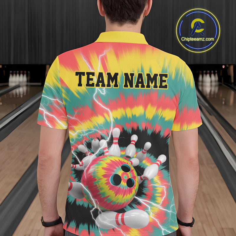 Custom Colorful Tie Dye Bowling Polo Shirts For Men, Rainbow Bowling Outfit IPHW9115