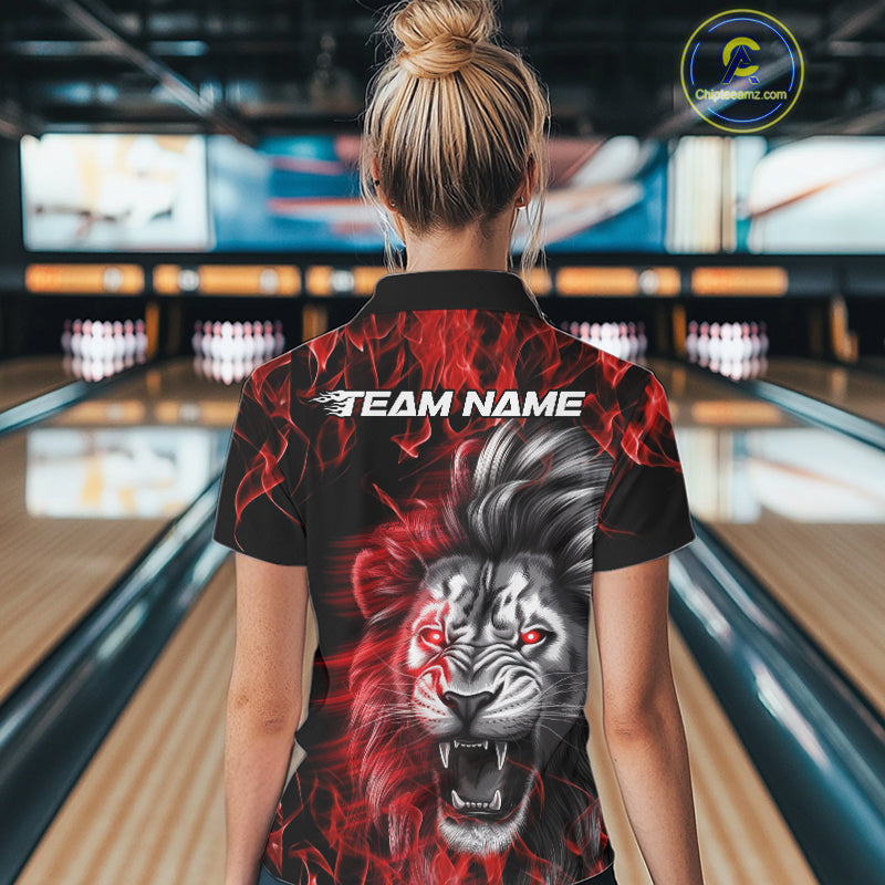 Custom Red Flame Lion Bowling Polo Team Shirts For Women, Lion Bowling League Shirt IPHW9326