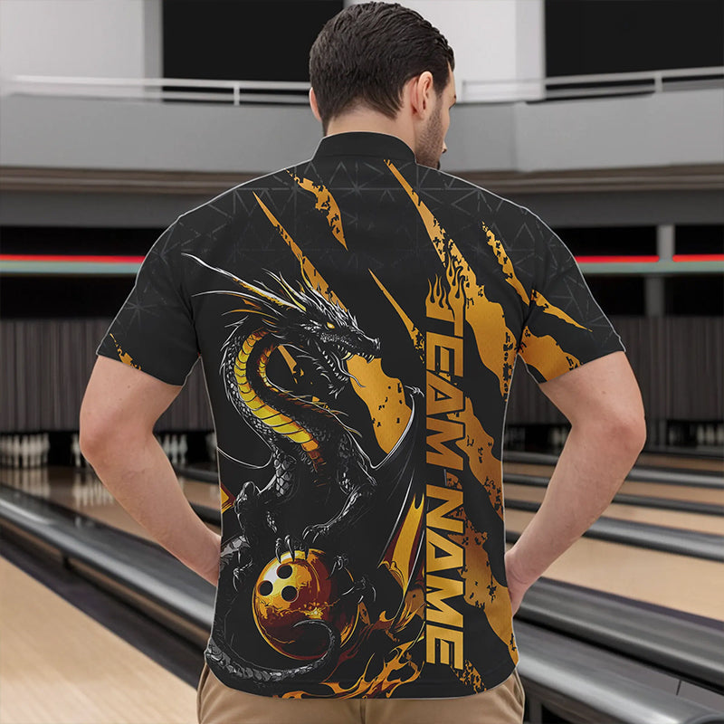 Custom Black And Gold Dragon Bowling Team Quarter-Zip Shirts For Men, Dragon Bowling Jerseys IPHW8923