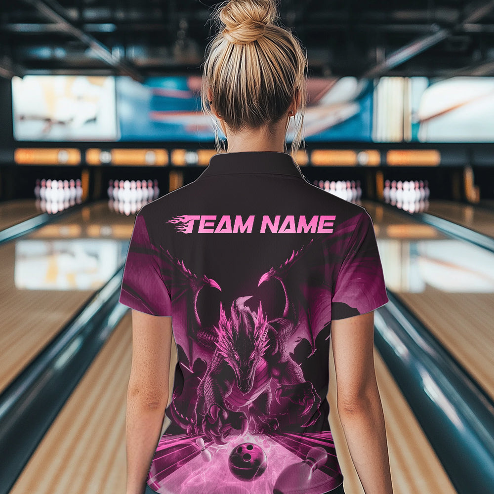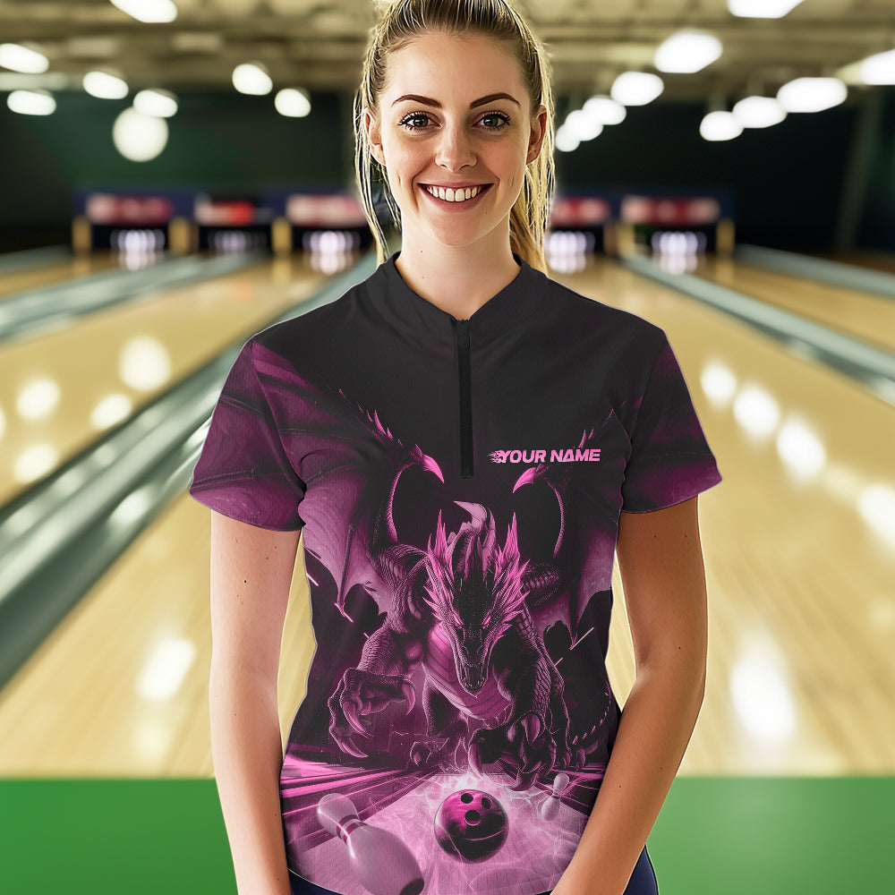 Custom Black And Pink Dragon Bowling Jerseys, Dragon Bowling Team Women Quarter-Zip Shirts IPHW8956
