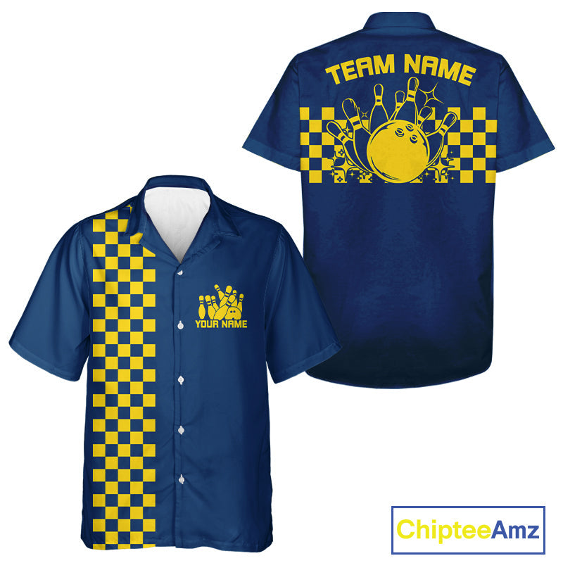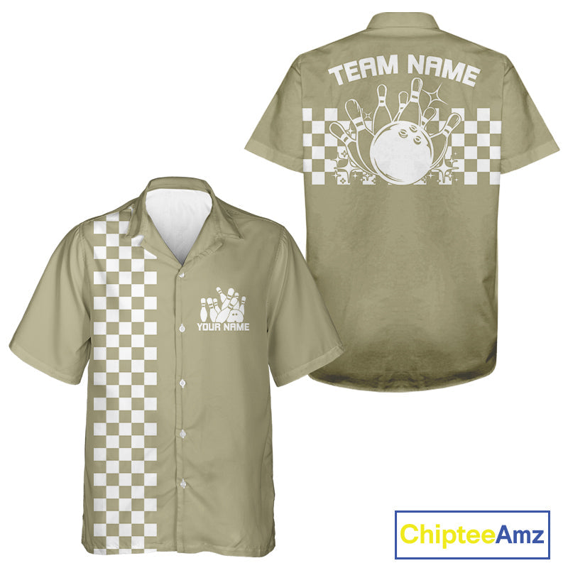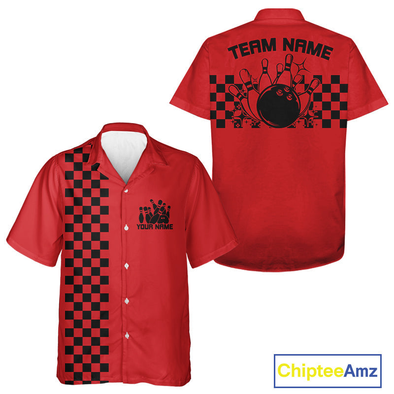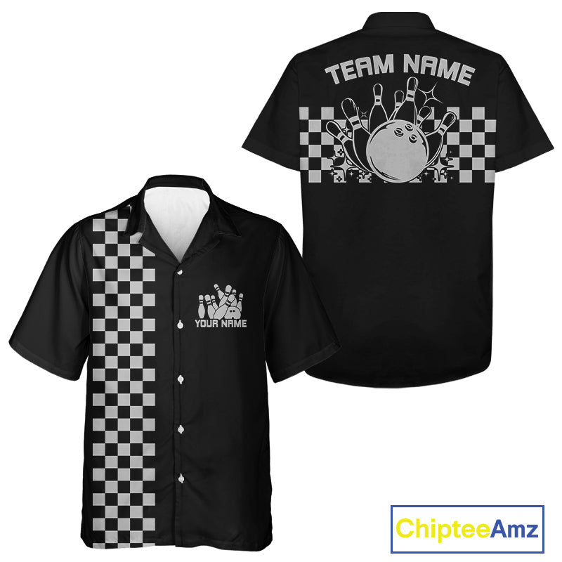 Custom Vintage Checkboard Bowling Hawaiian Shirt, Retro Bowling Button Up Shirt IPHW10076