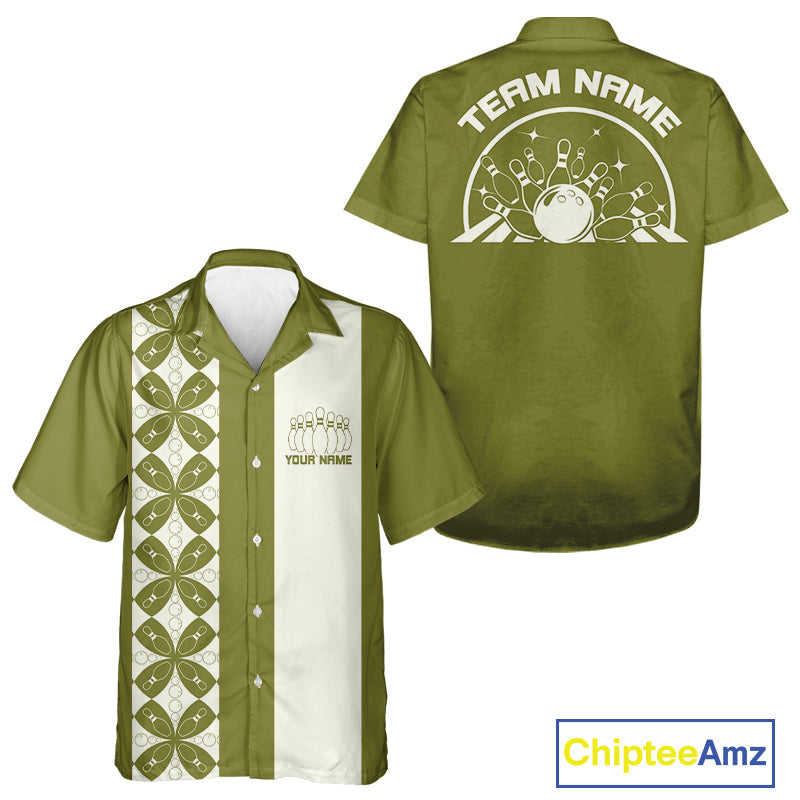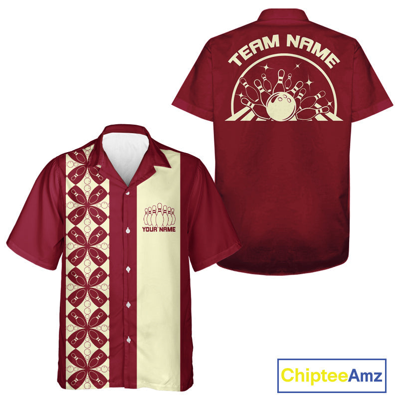Custom Retro Style Bowling Button Up Shirt, Vintage Bowling Hawaiian Team Shirt IPHW10079