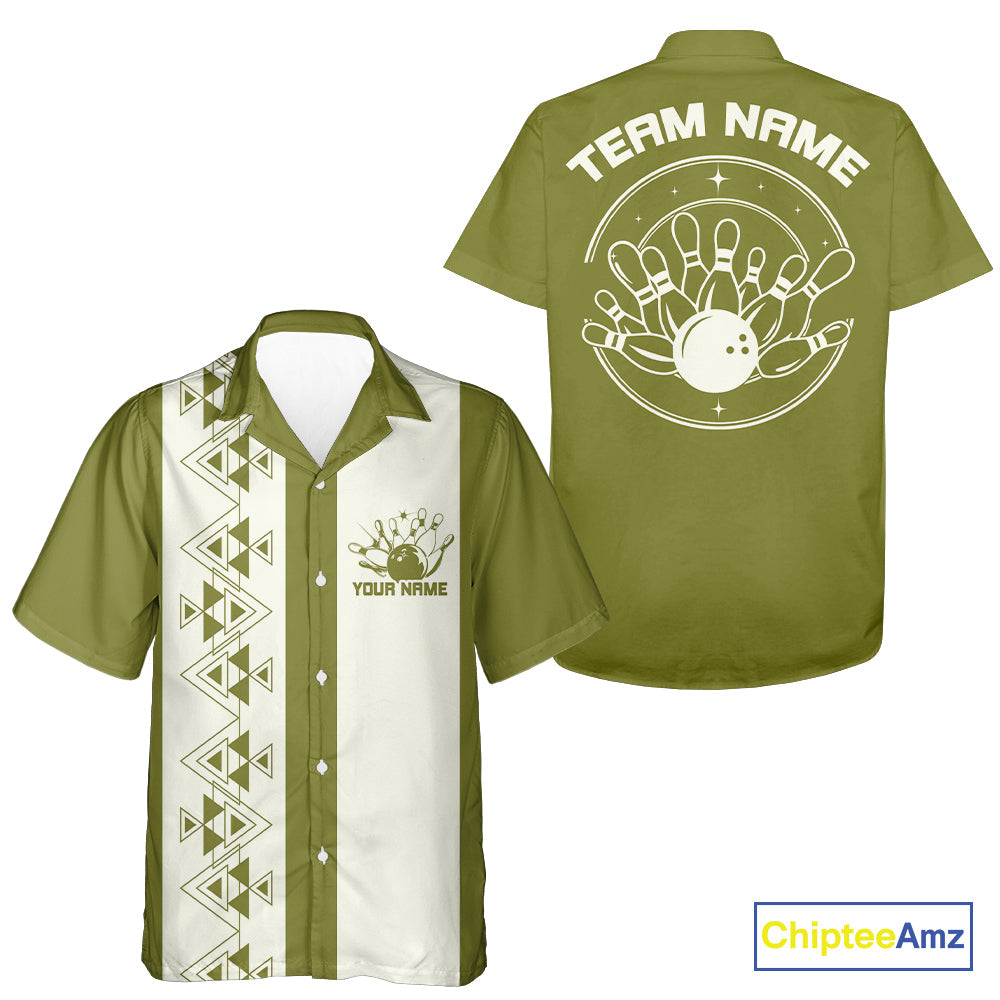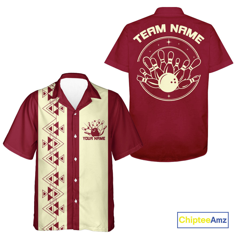 Custom Vintage Retro Style Tribal Bowling Team Hawaiian Shirts, Bowlers Outfit IPHW10082