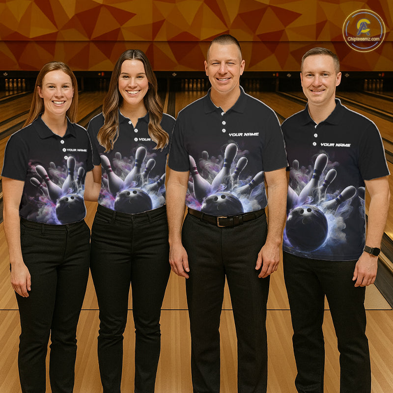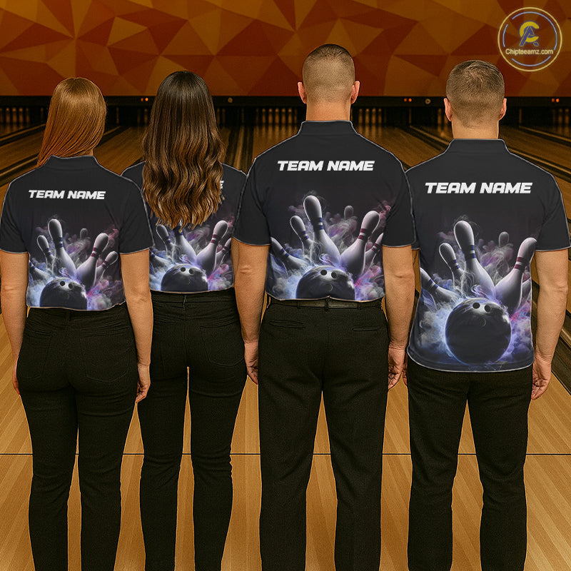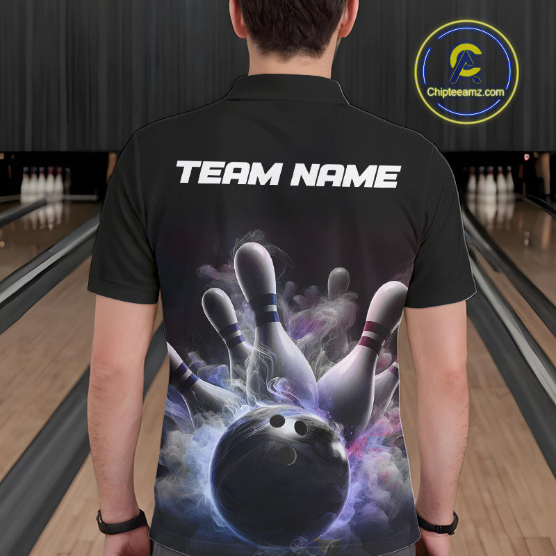 Custom Men Bowling Polo Shirts Smoke Bowling Team Jerseys Strike Bowling Shirts IPHW5402