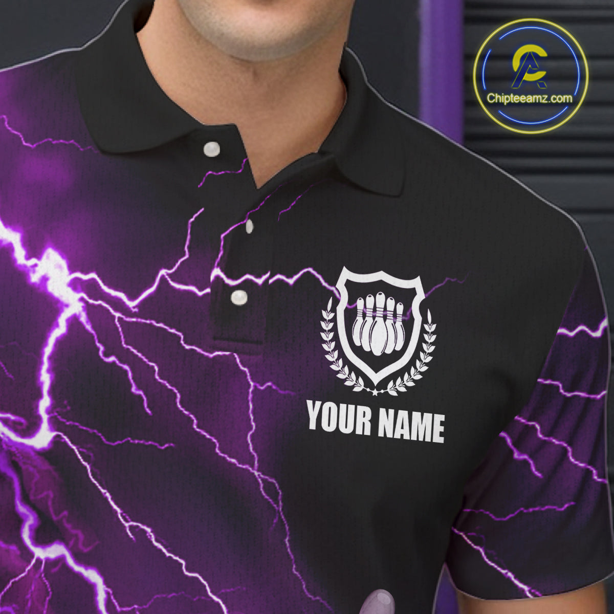 Mens polo bowling shirts Custom purple lightning thunder Bowling Team Jersey, gift for team Bowlers NQS6220