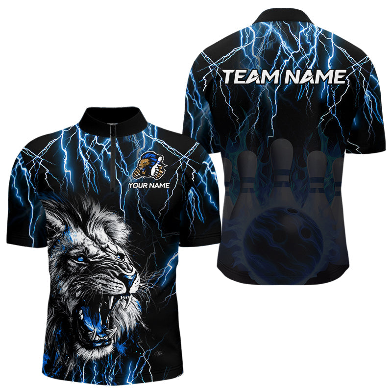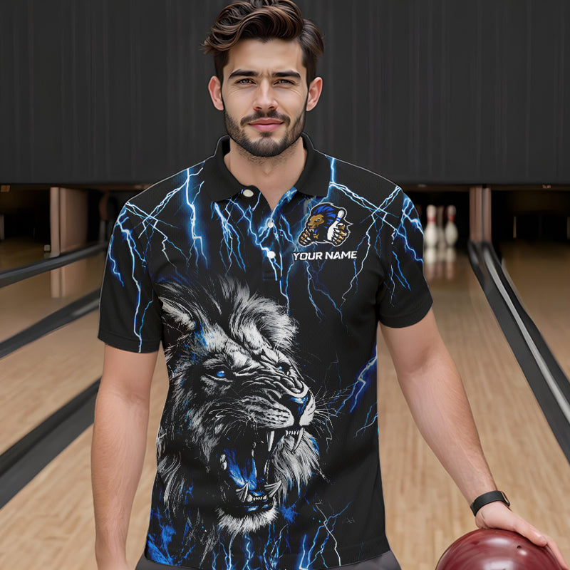Black and Blue Lightning Thunder Lion Bowling Shirt For Men Custom Lion Bowling Team Jerseys NQS9645
