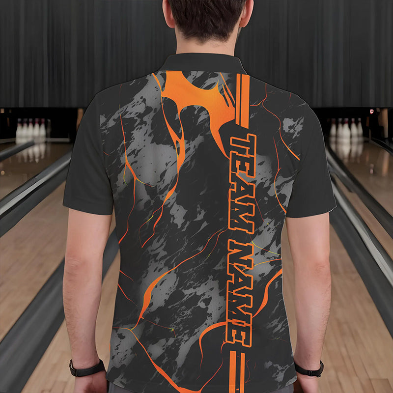 Custom Orange Strike Bowling Shirts Men Polo Orange Camo Bowling Team Jerseys Bowling League IPHW5385