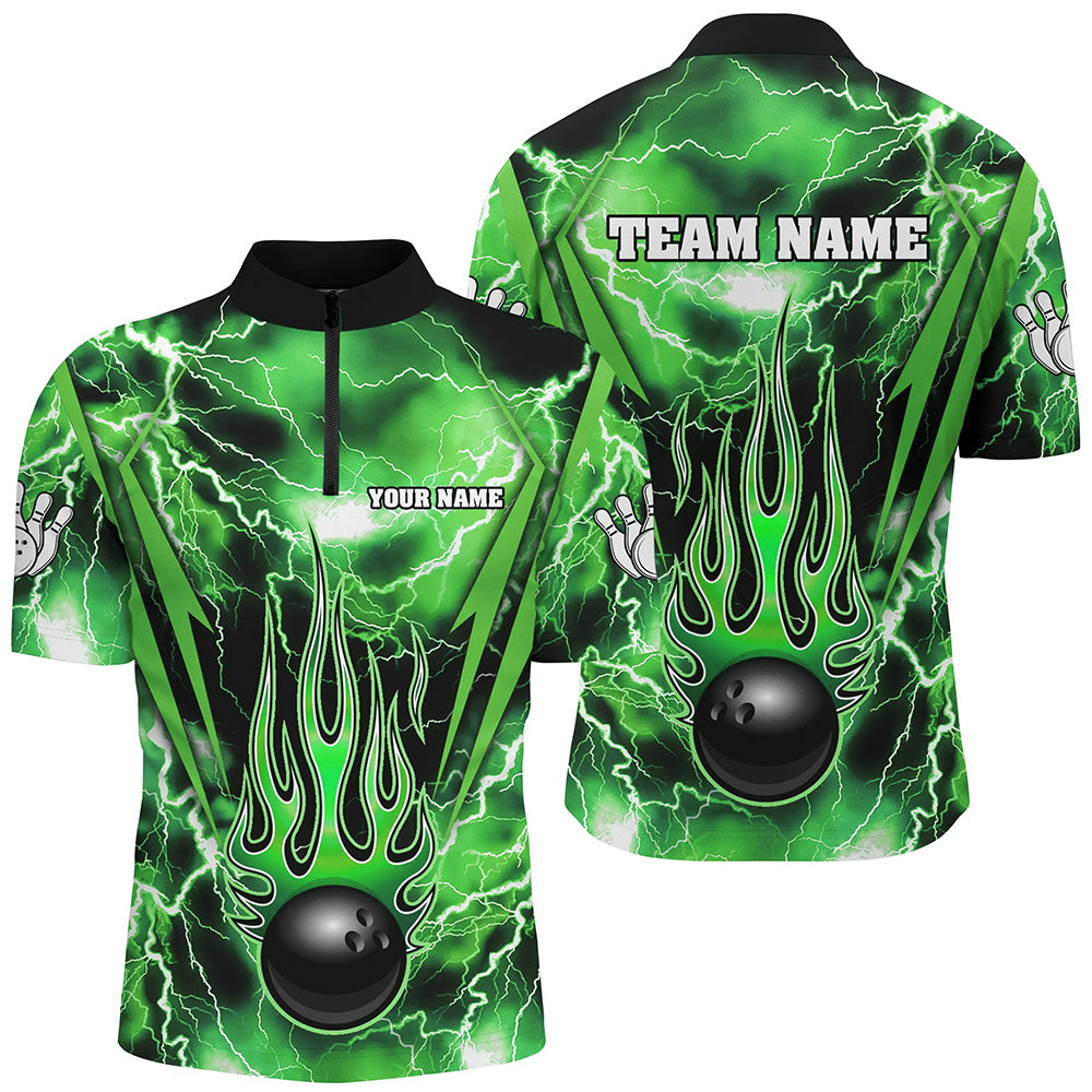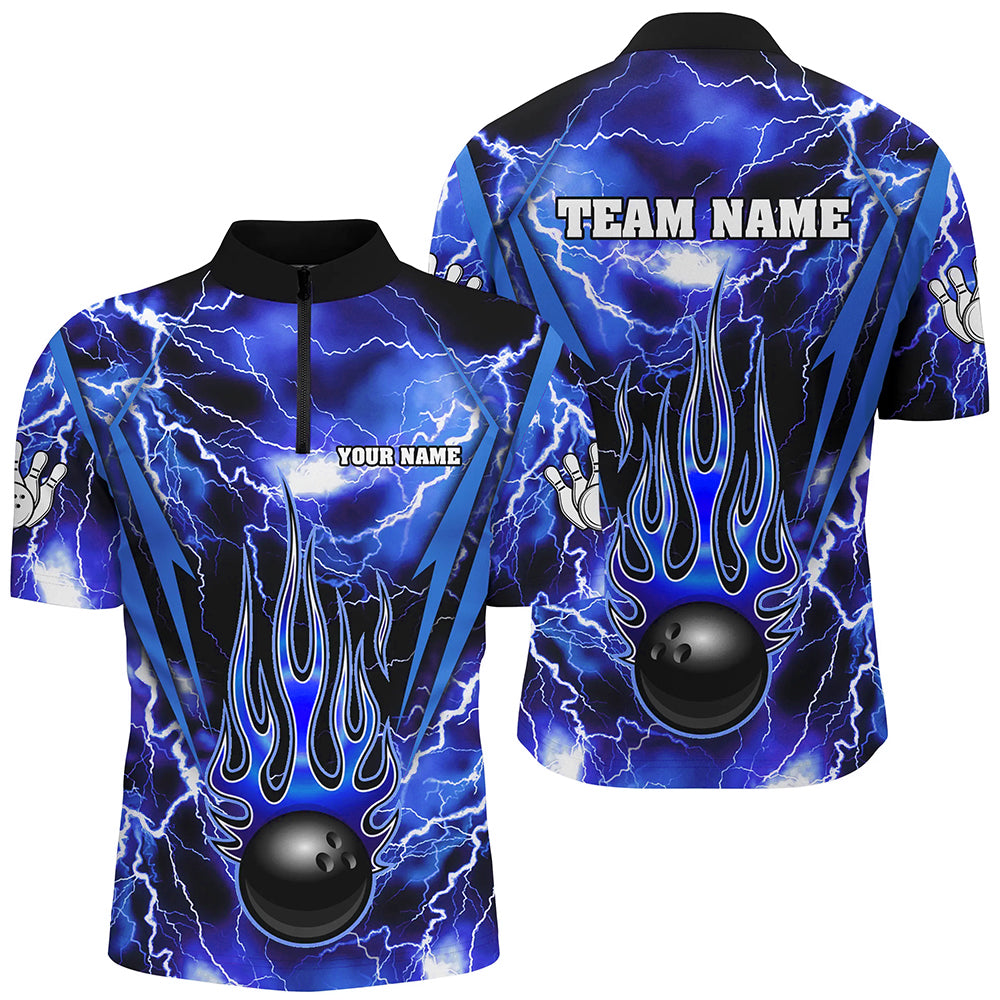 Personalized Thunder Bowling Shirt for Men Flame Bowling Team Jersey 1/4 Zip Shirt QZT277
