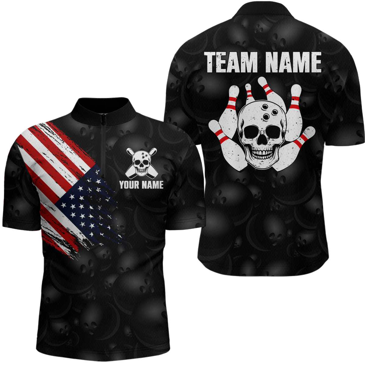 Skull US Flag Bowling Shirt for Men Personalized Patriotic Bowling Team Jersey Shirts Polo & Quarter-Zip HNT31