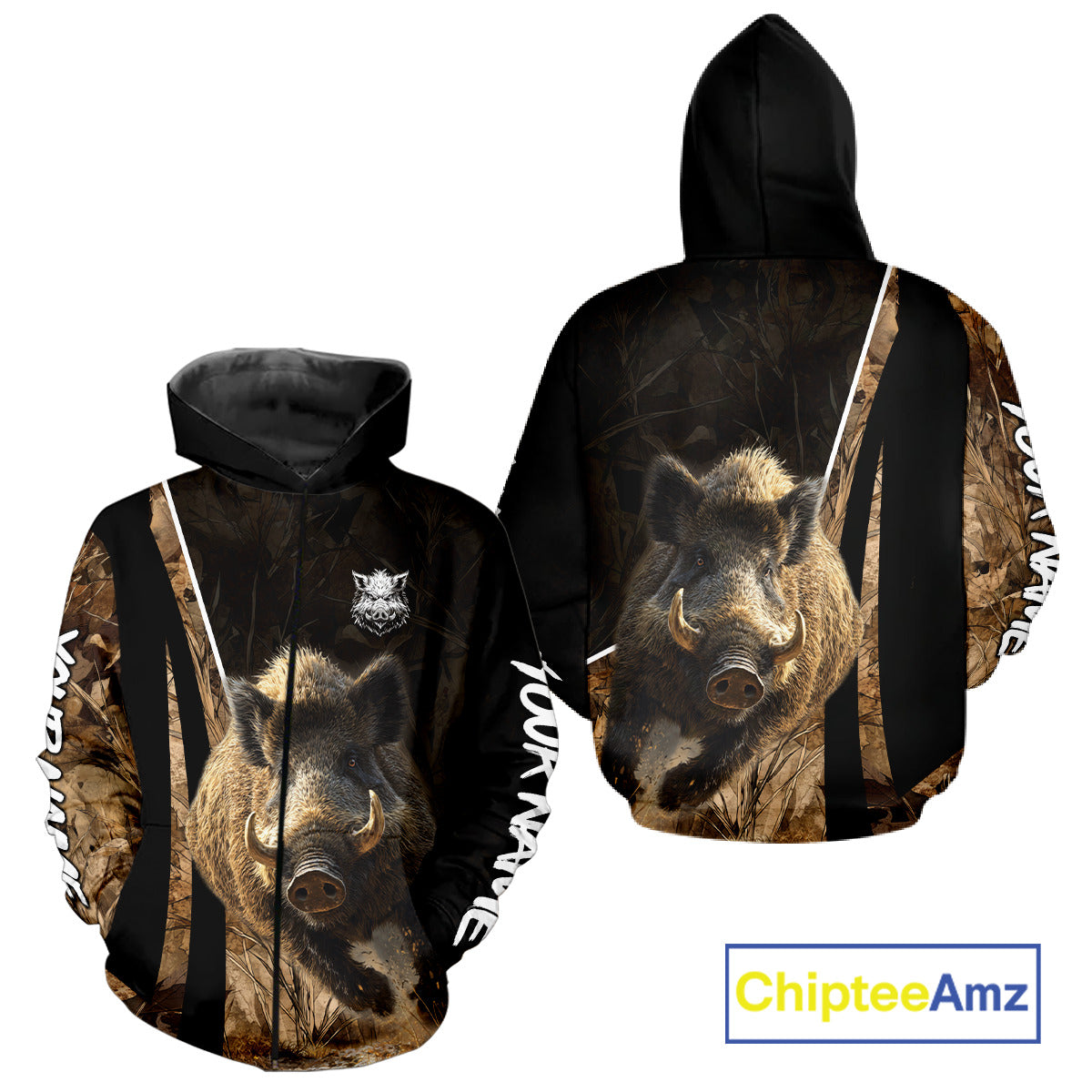 Best Custom Wild Boar Hunting Black Camo Forest 3D Printed Shirts, Hunting Gifts NHT284