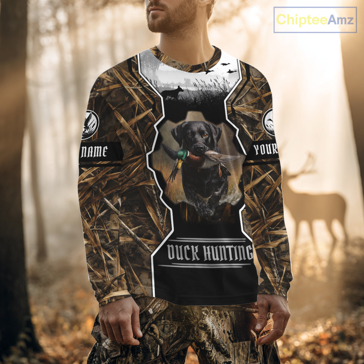 Custom Mallard Duck Black Lab Retriever Hunting Camo 3D Printed Custom Name Shirts, Hunting Gifts NBT189