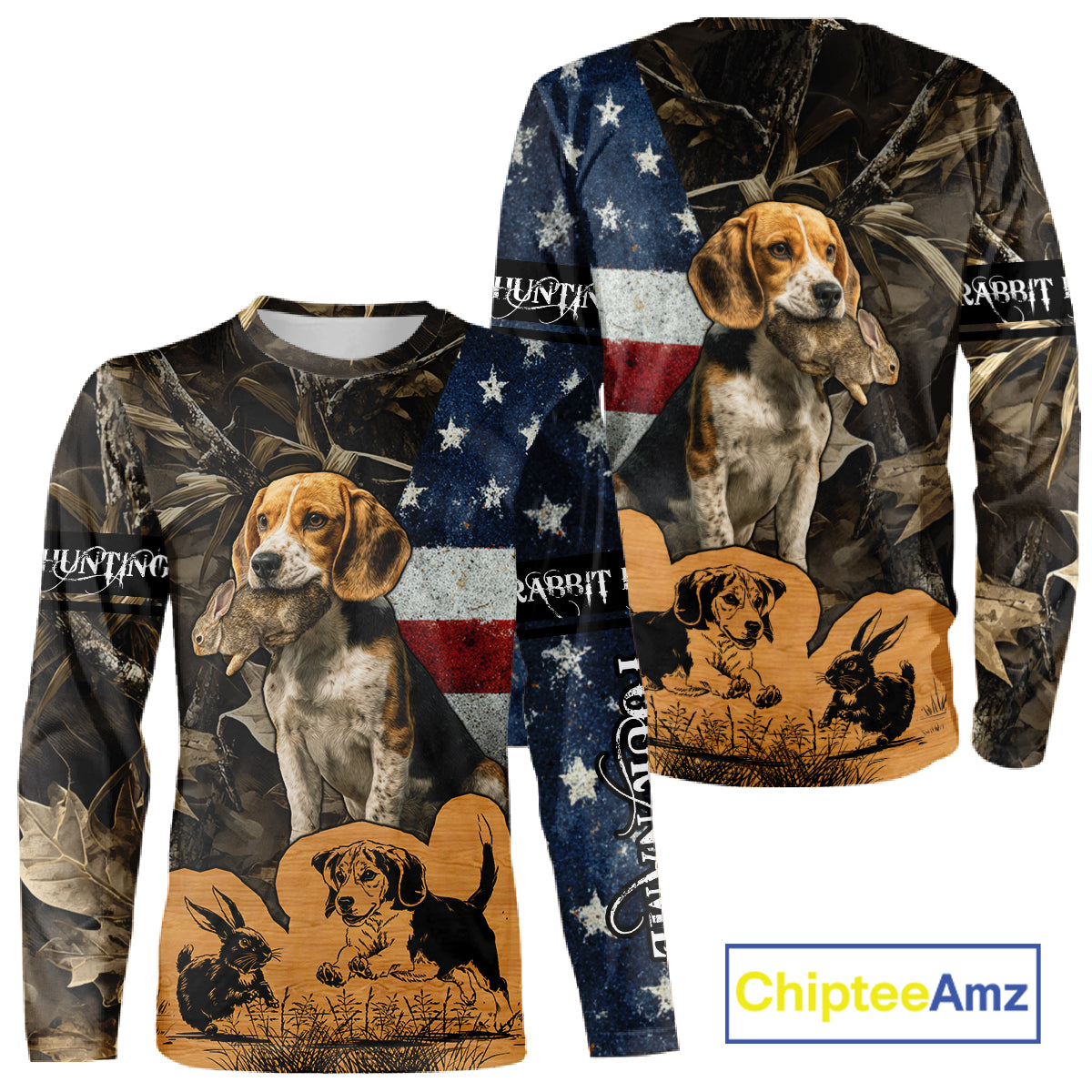 Custom Rabbit Hunting Camo US Flag 3D Shirts for Hunters, Rabbit Hunting Clothing NBT214