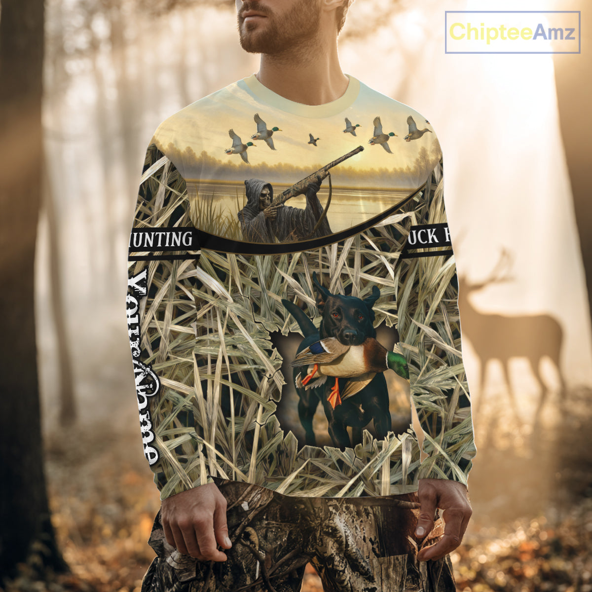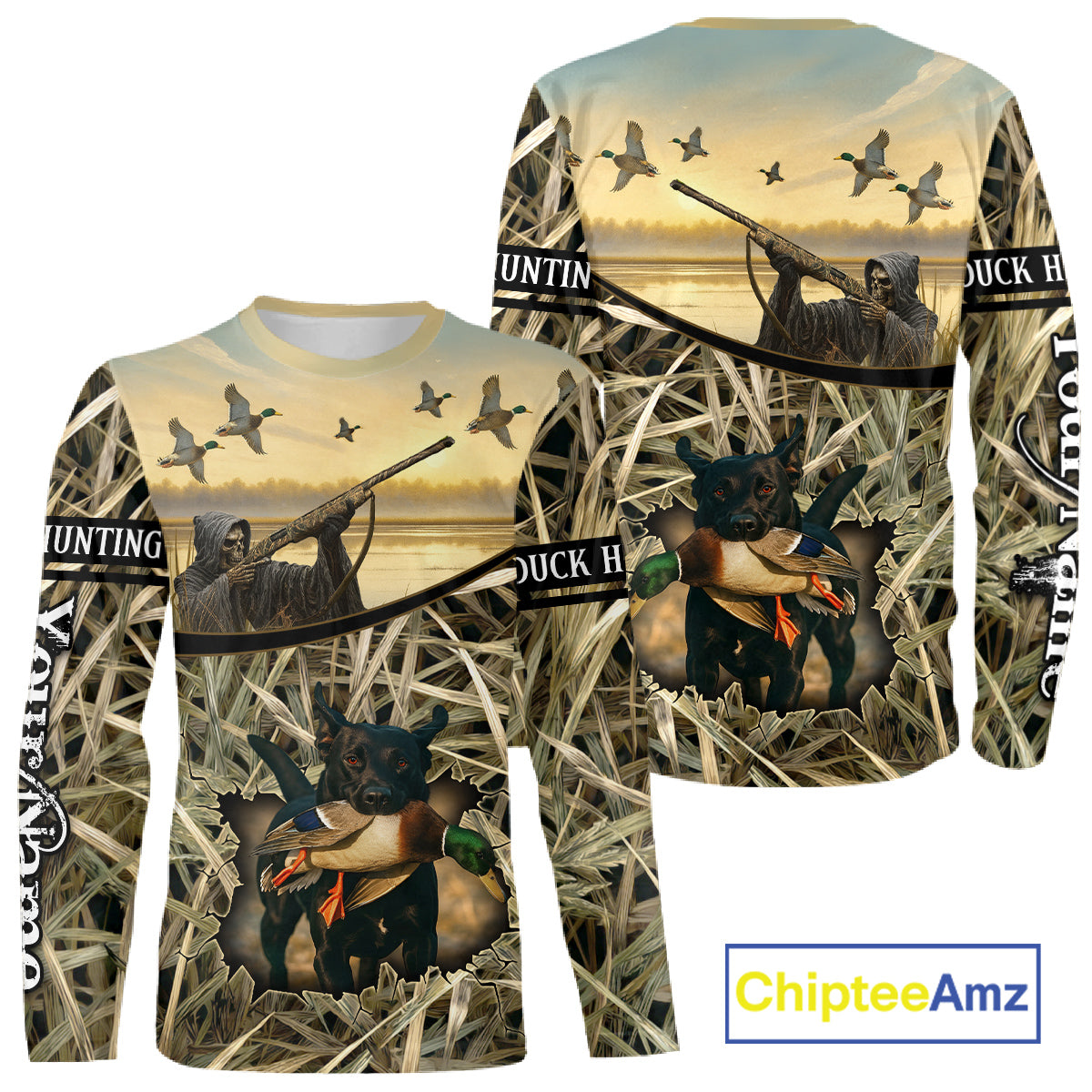 Duck Hunting 3D Waterfowl Camo Grim Reaper Black Labrador Retriever Shirt Hunting Gift NHT202