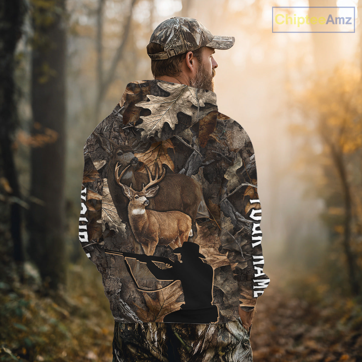 Whitetail Deer Hunting Brown Camo with Hunter 3D Print Custom Name Shirts, Hunting Gift NBT269