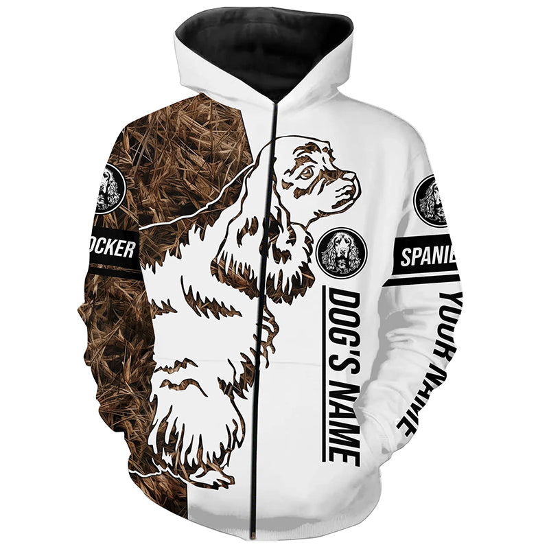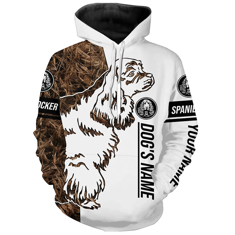Spaniel (Cocker) Gun Dog Tattoo Camo Customized Name Shirt, Hoodie - Spaniel Hunting Dog, Duck Bird Hunting Gifts FSD2606