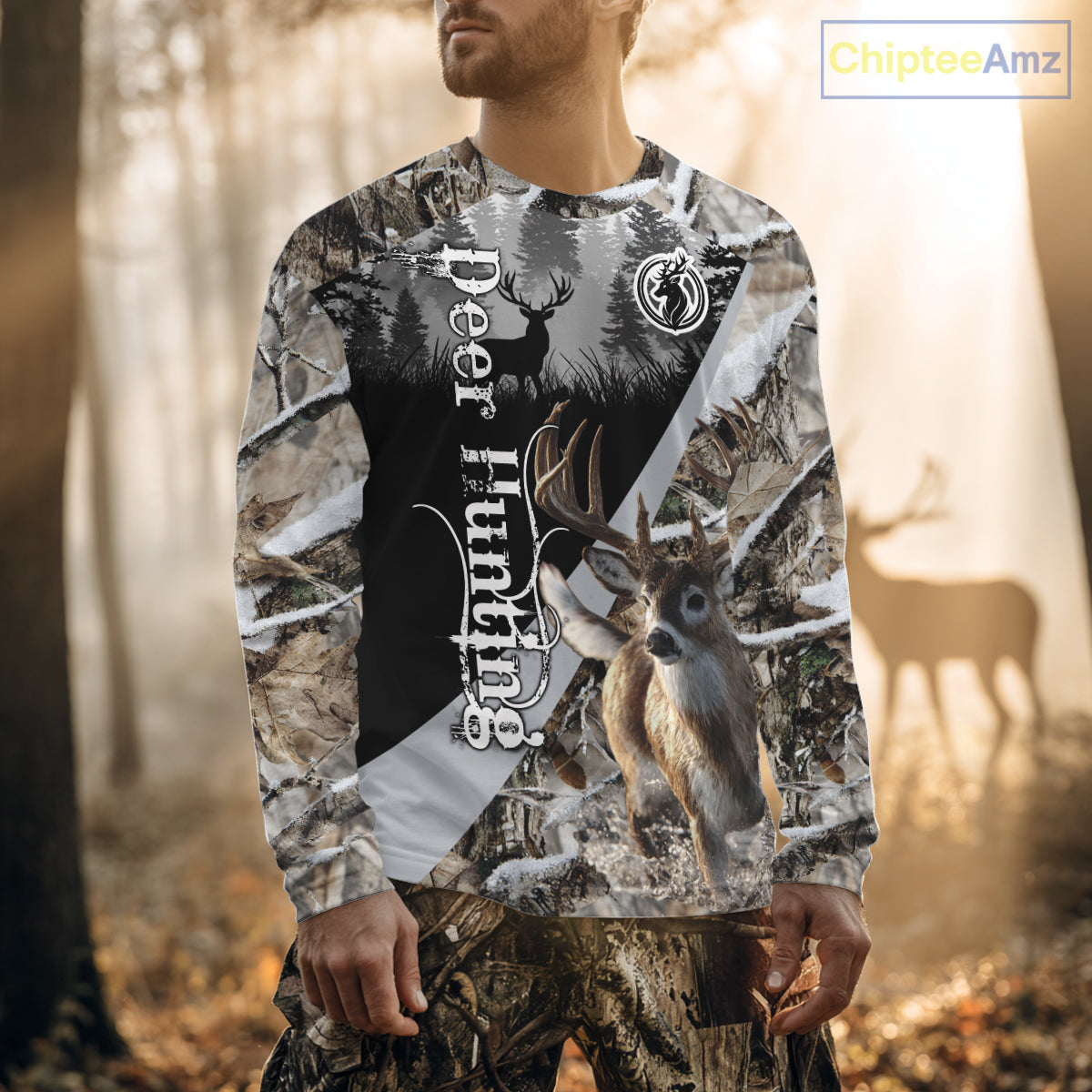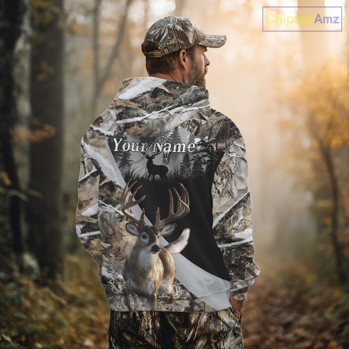 Whitetail Deer Hunting 3D All Over Print Winter Camo Shirt Custom Name Gifts For Hunter NHT215