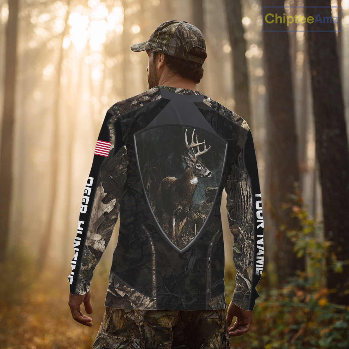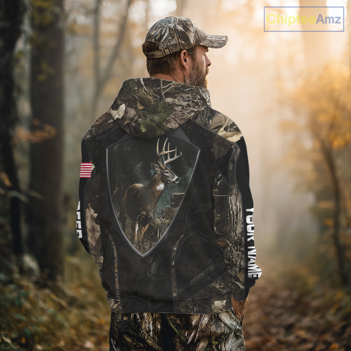 Whitetail Deer Hunting Camo US Flag 3D All Over Printed Shirts, Best Deer Hunting Gifts for Men NBT222