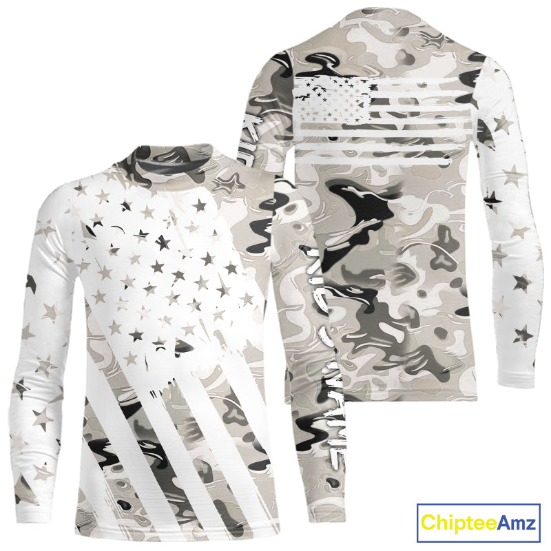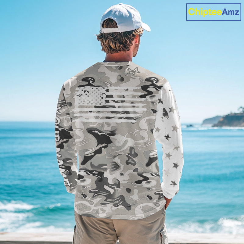 American flag Light gray camo fishing personalized patriotic UV Protection camouflage Fishing jersey NQS10367