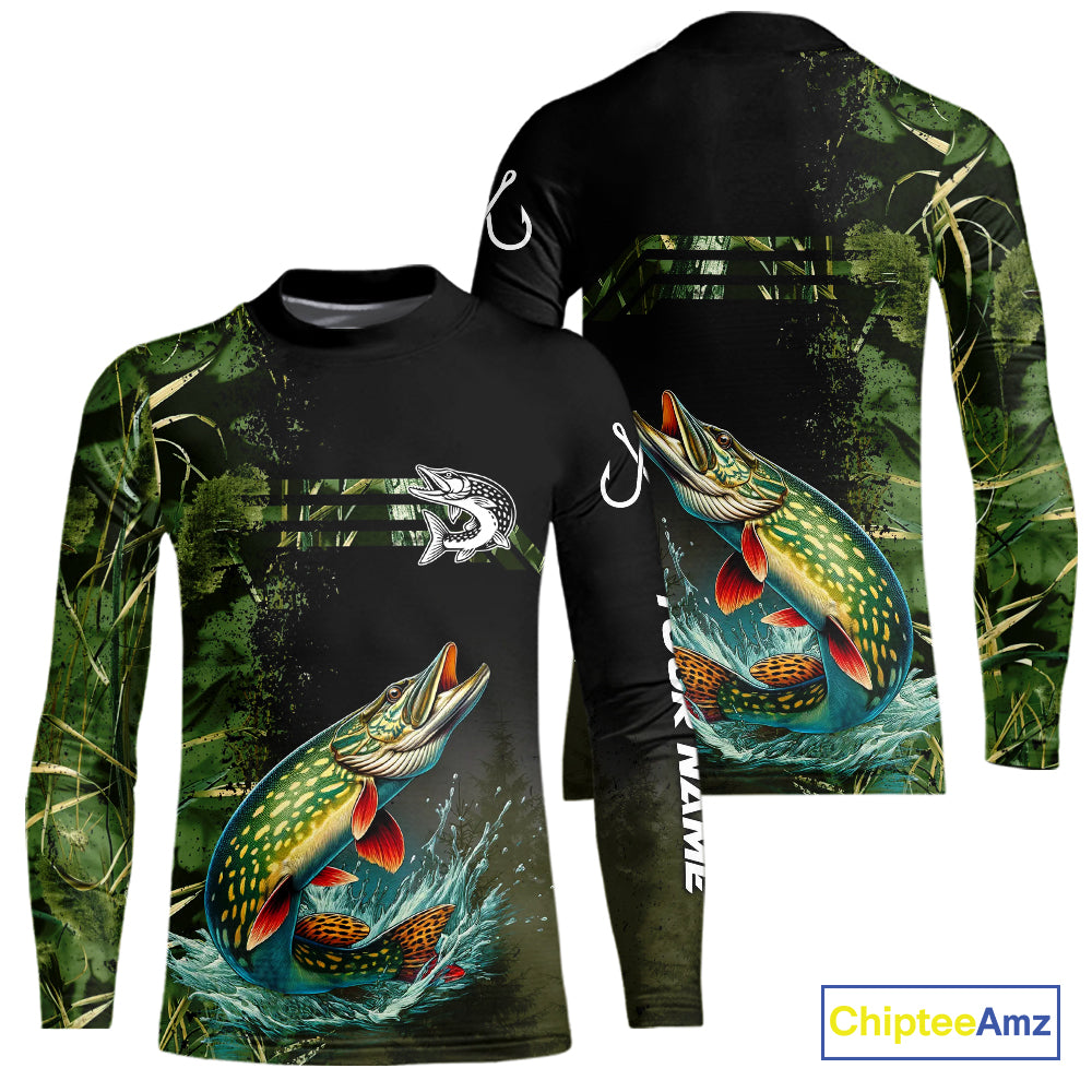 Northern Pike fishing camouflage Custom performance long sleeve Fishing Shirts, Pike Fishing jerseys NQS10082