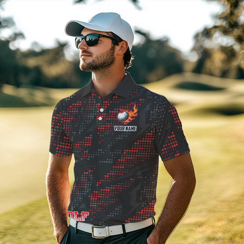 Black and Red Camo Golf Polo Shirts For Men Custom mens golf outfit team golf shirts NQS9715