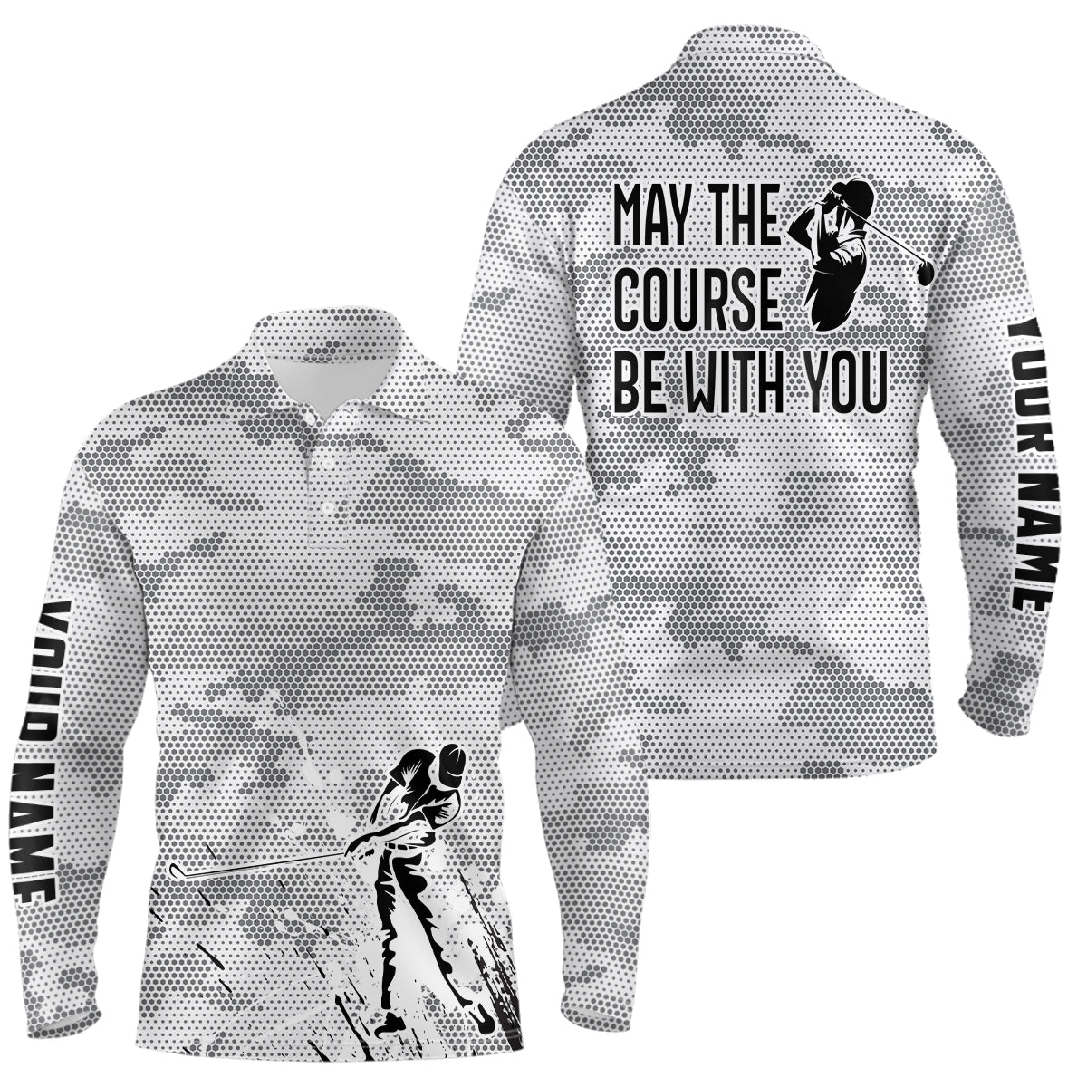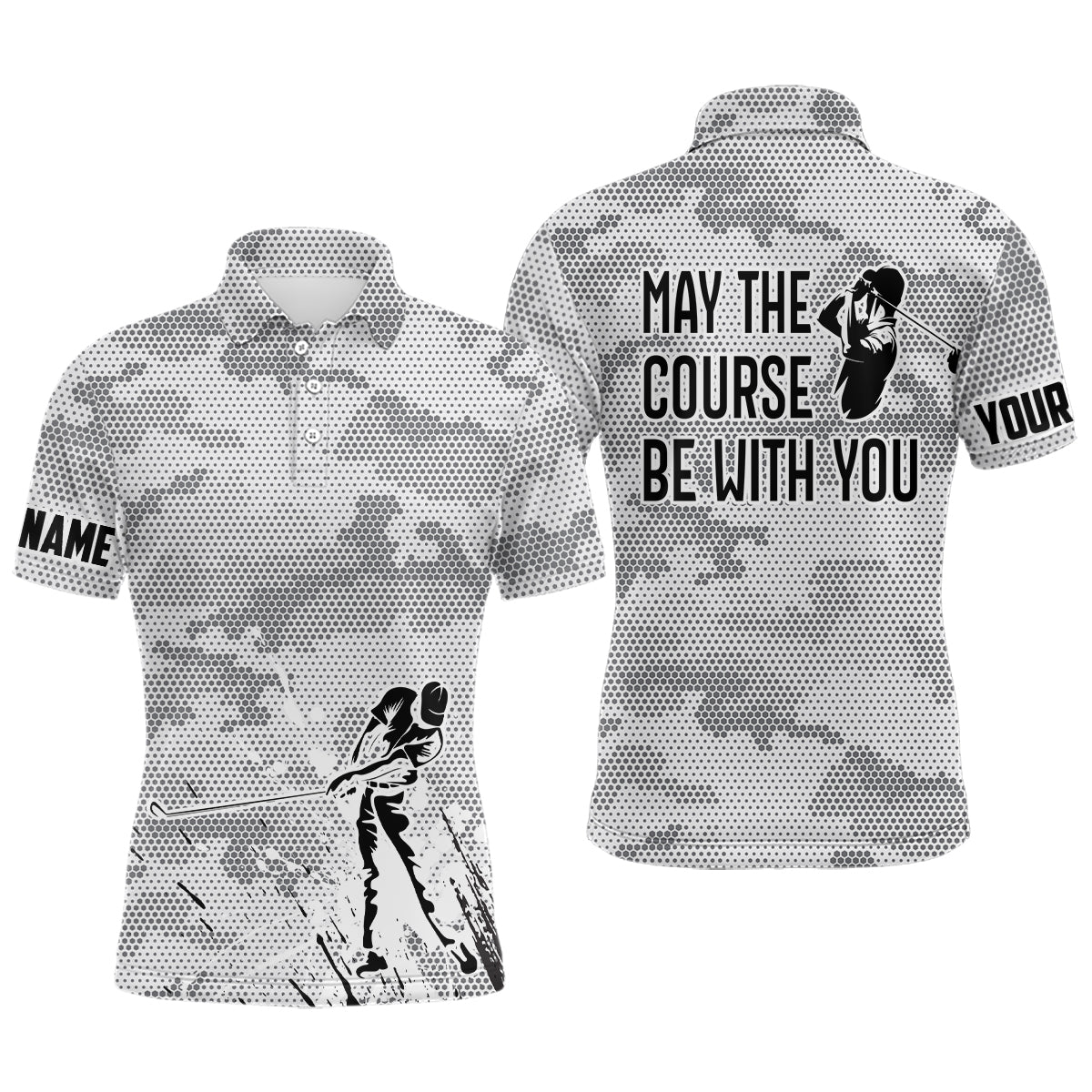 Black white camo Mens golf polo shirt custom May the course be with you, best mens golf wears NQS6848