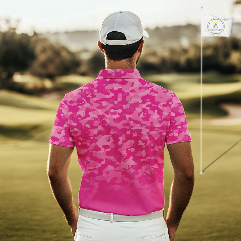 Breast Cancer Awareness golf shirts custom Mens golf polos shirts, pink camo ribbon golf shirts NQS10191
