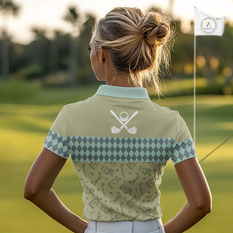 Olive Green Golf Camo argyle pattern Women golf polo shirts custom name best ladies golf wear NQS9973