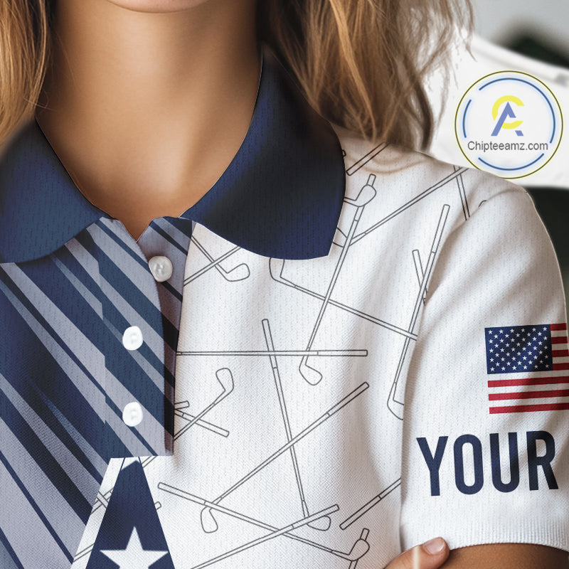 Personalized Red, White and Blue American Flag Star Golf Camo polo shirts for women , unique golf gift NQS9960